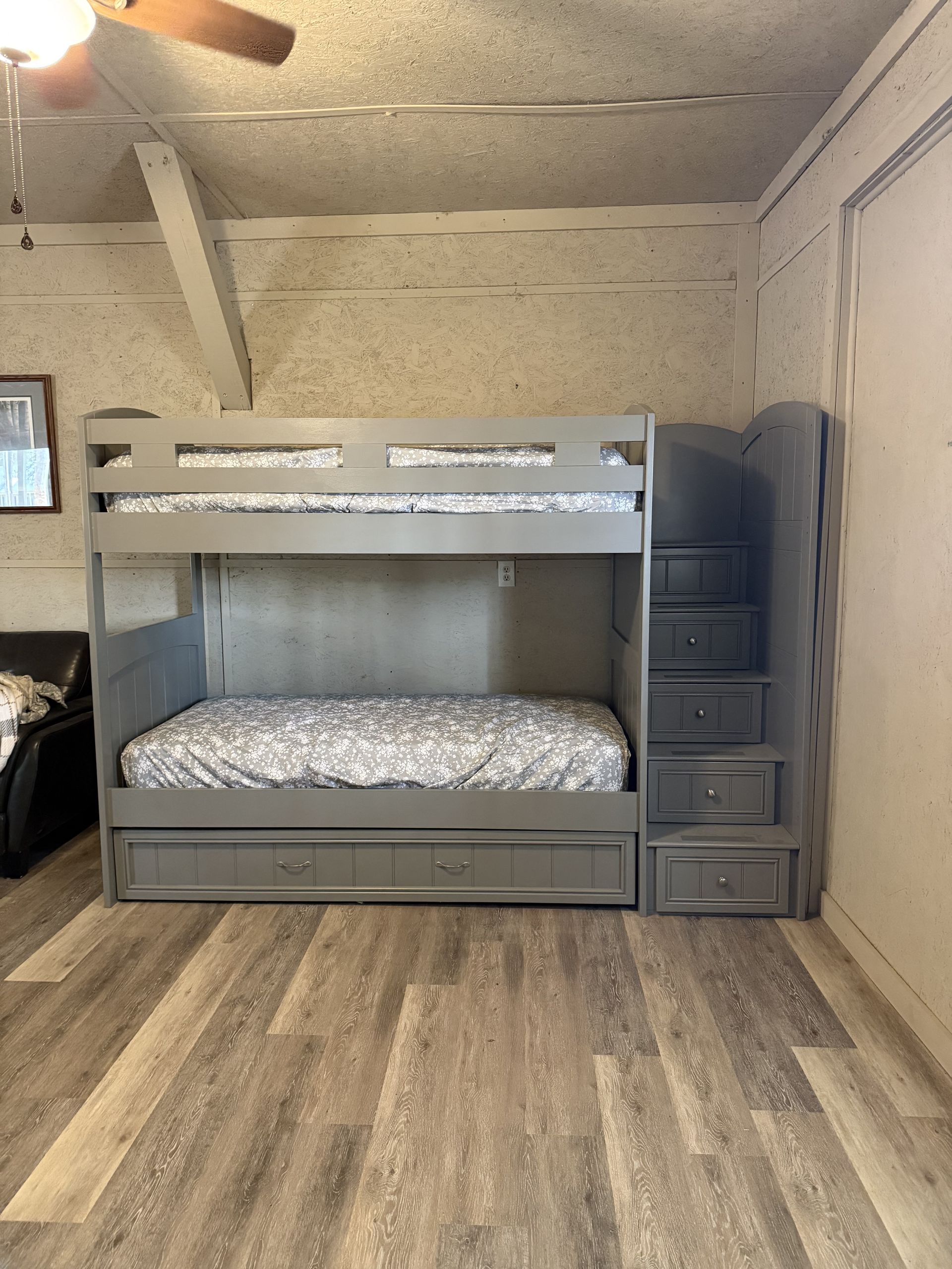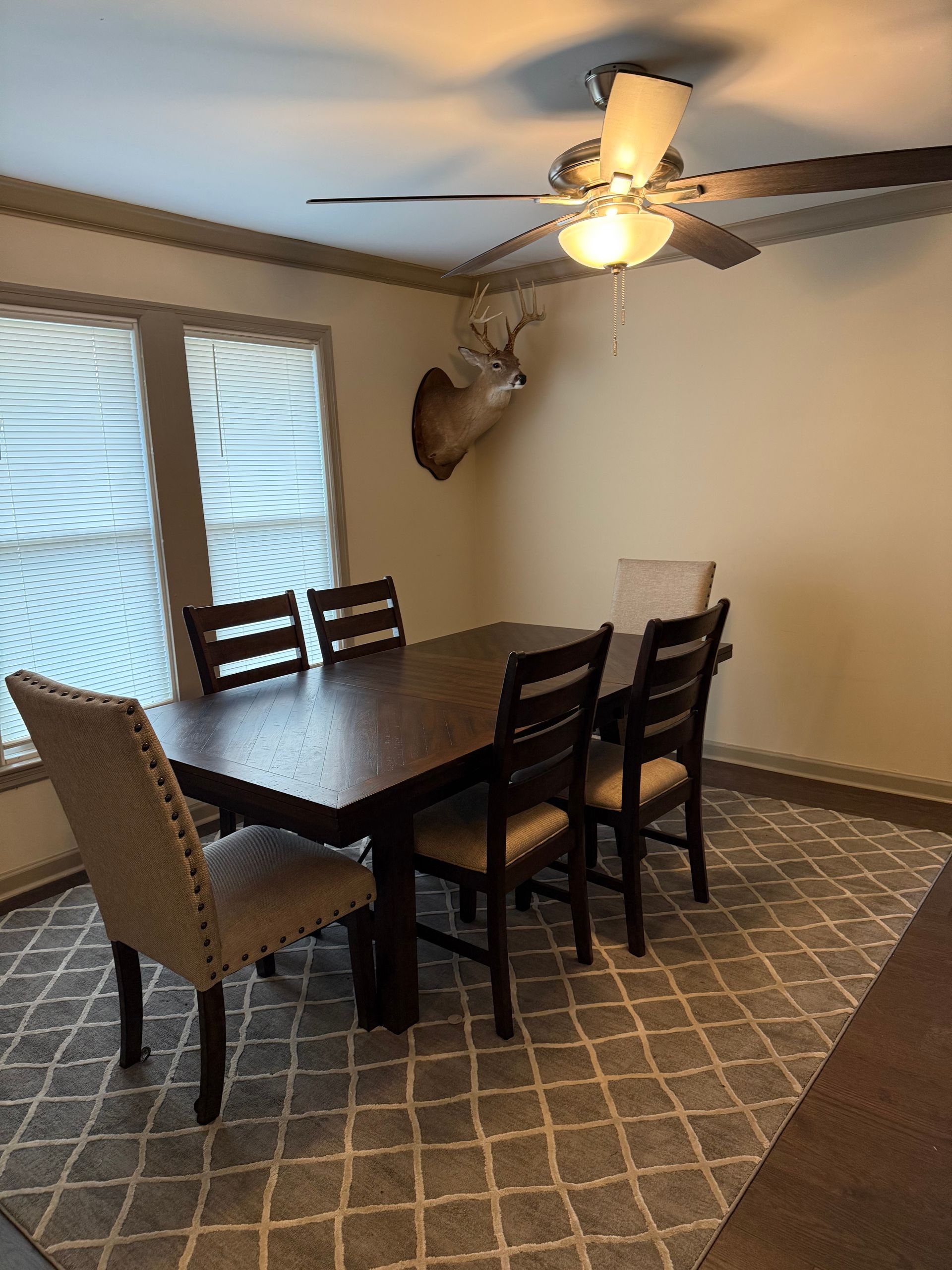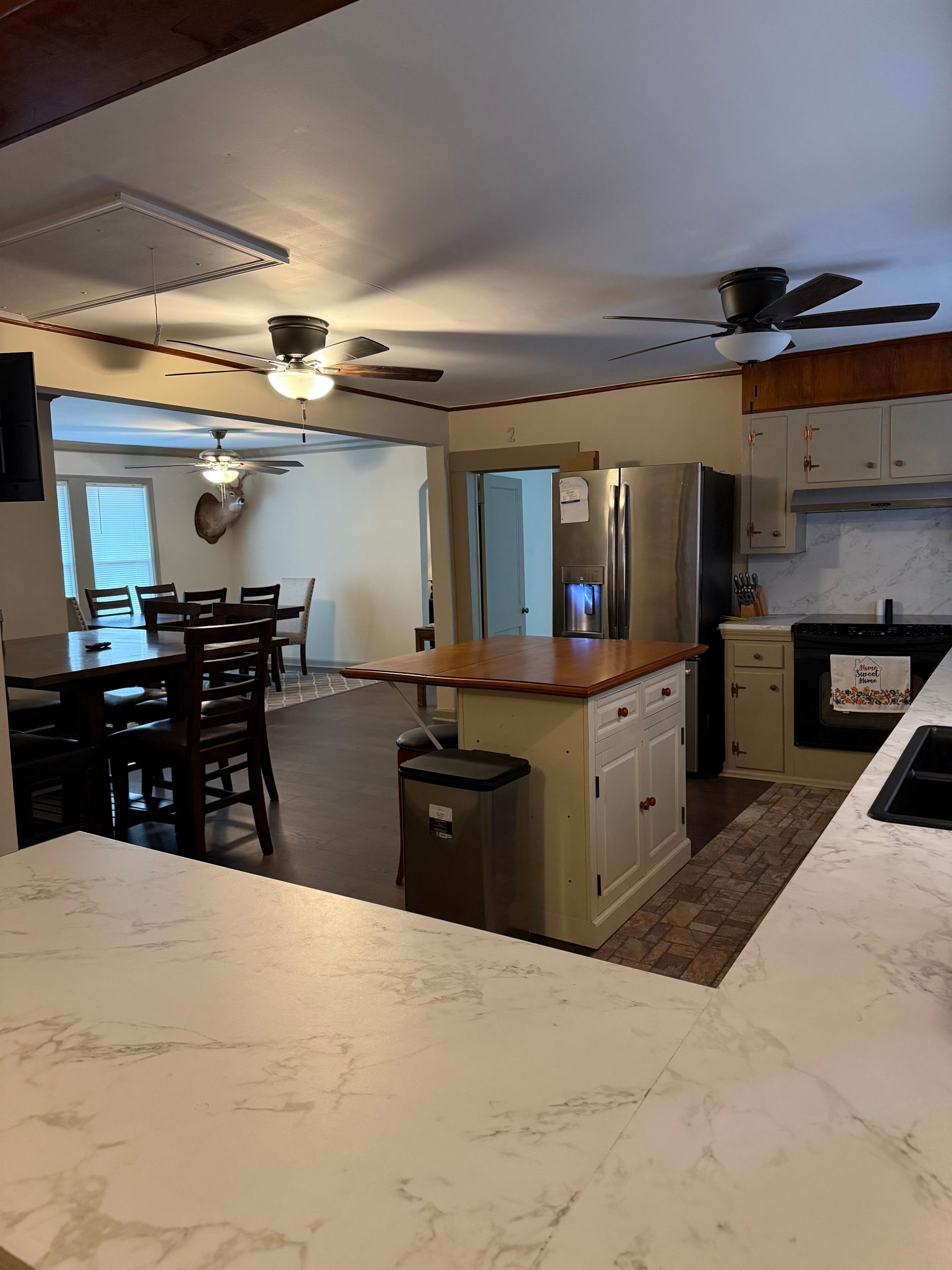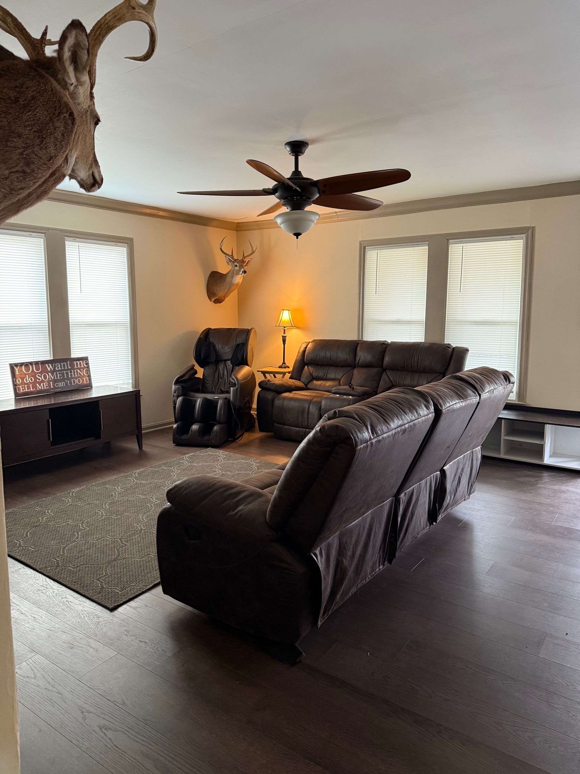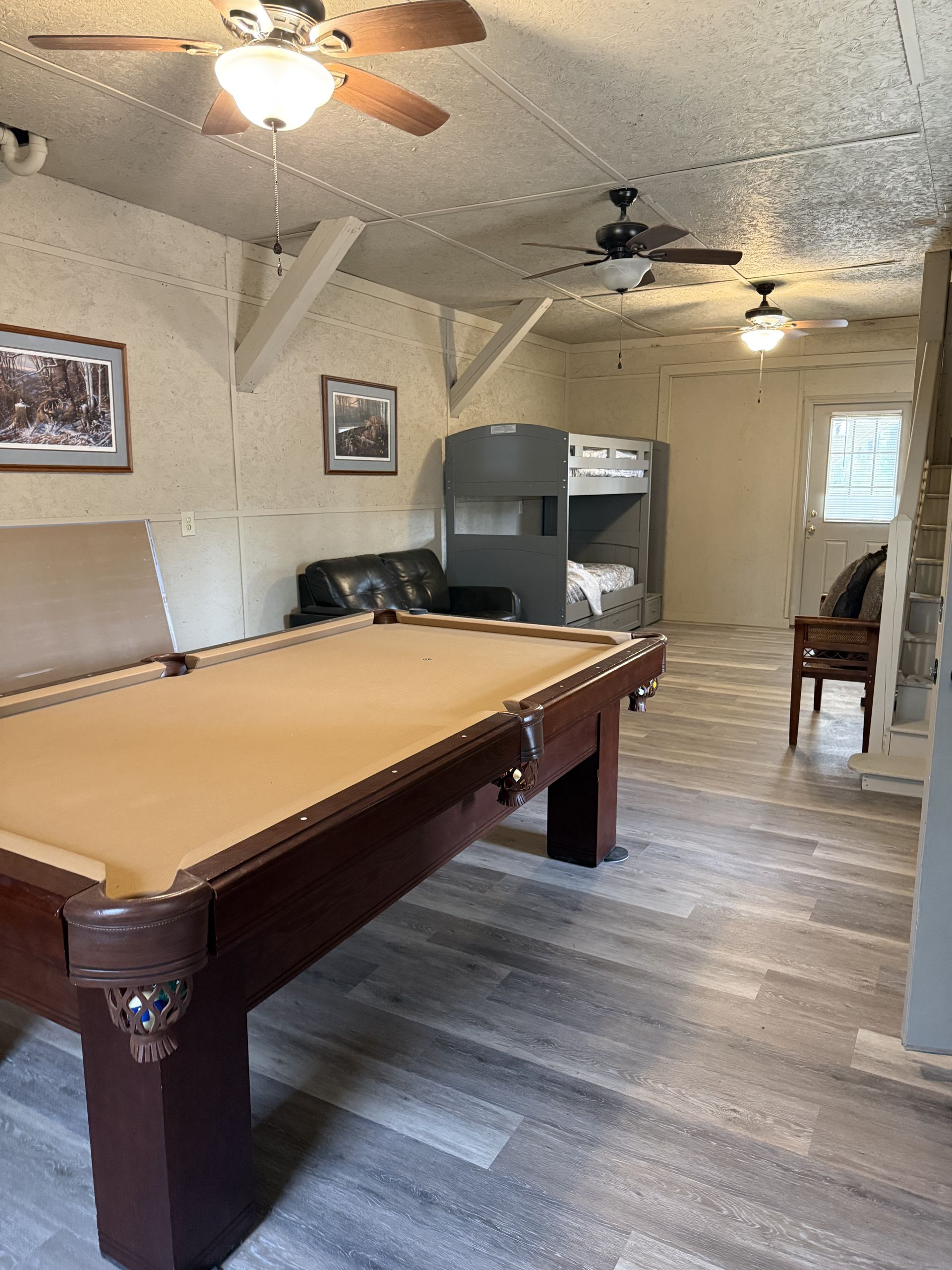 Heaven Scent Retreat's private cottage offers all the comforts of home with an upscale touch. Step inside to a spacious living area anchored by a plush sectional, a fully equipped kitchen with modern appliances, and a charming dining space perfect for gathering after a long day outdoors. Multiple bedrooms—each with its own character—accommodate families, couples, or small groups with ease, while beautifully tiled bathrooms featuring sleek walk-in showers and marble-style finishes add a luxurious feel throughout. With full-size laundry, a private entrance, and cozy details at every turn, the cottage delivers an intimate, home-away-from-home retreat just steps from the main lodge.